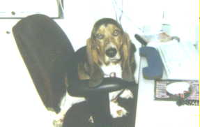 She is a typical and Lazy Bassett Hound. She is an Aries by the way and is going to be 4 years old this spring. She has the family trained to answer to her every whine and whimper. Her favorite past-time is sleeping a minimum of 18 hours a day. She also loves her chew bones and an occasional walk in the neighborhood. As you can see from the photo, she has an addiction, "Surfing the Web," We have sought Psychological Counseling for her habit. We are also trying to find some way to eliminate her Doggy Slobber on the keyboard. Look for this "Cyber Dog" on the web @Boof-Boof.com/